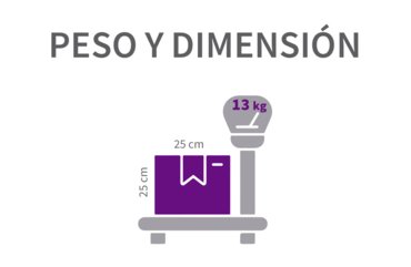 Puedes enviar desde sobres hasta cajas grandes. Los paquetes estándar son de 13 kg, con medida de 25 cm x 25 cm x 25 cm.